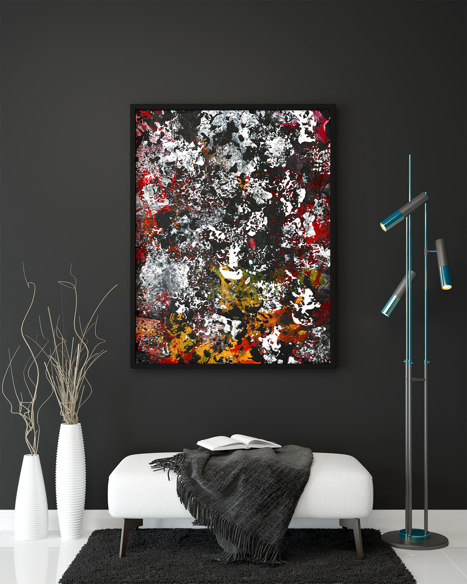 Abstract paintings made in bursts of creativity during rough times and that helped me keep going.
